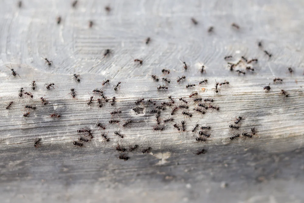 If you’re seeing repeated trails in the same spot, ants emerging from baseboards, or activity that returns after you clean, there’s a good chance the colony is established in a protected void or nearby exterior structure. That’s especially common with carpenter ants, which can nest in damp wood and expand into structural areas over time.